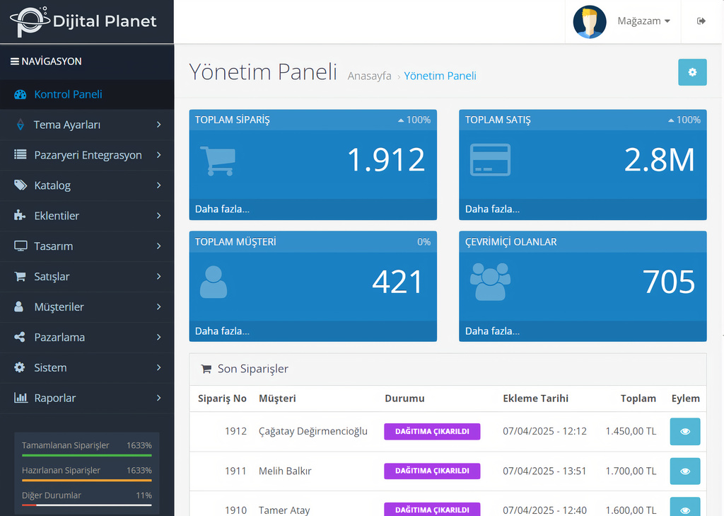 E-ticaret dünyasında fark yaratmak için ihtiyaç duyduğunuz her şey burada. Dijital Planet olarak, güçlü alt yapımız, kullanıcı dostu tasarımlarımız ve satış odaklı çözümlerimizle markanızı dijitalde büyütmenize yardımcı oluyoruz.