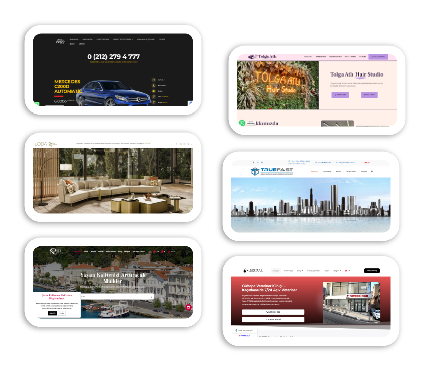Hazırladığımız siteler, hızlı açılan sayfalar ve SEO uyumluluğuyla Google'da daha görünür olmanızı sağlar. Kurumsal kimliğinize uygun renkler, yazı tipleri ve kullanıcı deneyimi odaklı tasarımlar sayesinde ziyaretçilerinizi etkileyecek profesyonel bir dijital vitrin sunuyoruz. Anahtar teslim çözümlerimizle işinize odaklanırken dijital varlığınızı güvenle bize bırakabilirsiniz.